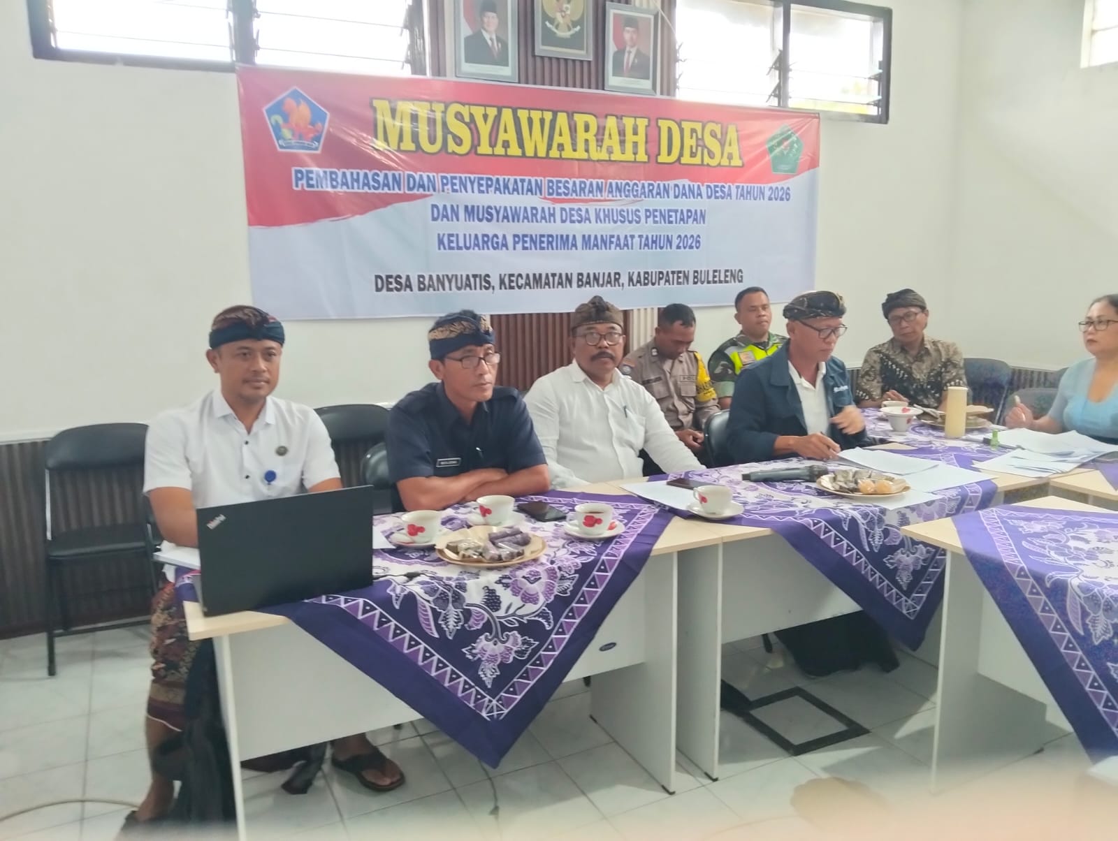 Banjar – Kasubag Umum dan Keuangan Kantor Camat Banjar Made Suardana menghadiri Musyawarah Desa (Musdes) Desa Banyuatis yang digelar pada Kamis (26/2/2026) di Ruang Rapat Kantor Desa Banyuatis. Kehadiran perwakilan kecamatan tersebut didampingi oleh staf pemerintahan, I Nyoman Merta Sedana.