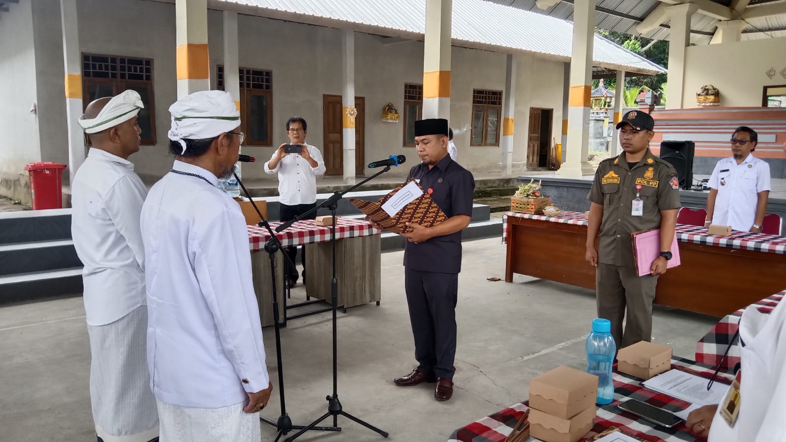Acara diawali dengan pembacaan lagu kebangsaan Indonesia Raya, diikuti dengan pembacaan Surat Keputusan penetapan anggota BPD PAW oleh perwakilan seksi pemerintahan Kecamatan Banjar,sesuai dengan ketentuan Permendagri Nomor 110 Tahun 2016 tentang BPD dan Peraturan Daerah Kabupaten Buleleng yang berlaku.