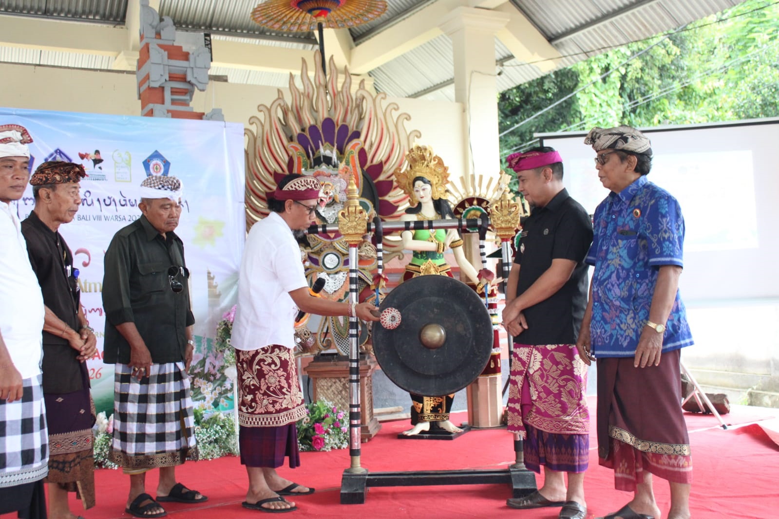 Pembukaan Bulan Bahasa Bali ke-VIII secara resmi dilakukan oleh Perbekel Banjar dengan pemukulan gong sebagai tanda dimulainya rangkaian kegiatan.