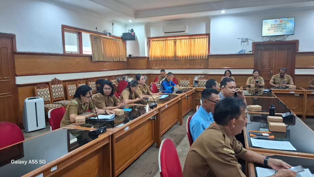 Bertempat di Ruang Unit IV Kantor Bupati Buleleng, dilaksanakan Rapat Pemantapan Kegiatan Hari Ulang Tahun (HUT) Kota Singaraja. Rapat dibuka oleh Asisten I selaku Ketua Panitia HUT Kota Singaraja yang mengangkat tema “Bineka Shanti Jagadhita”. Kegiatan ini dihadiri oleh Sekretaris Daerah Kabupaten Buleleng, Asisten II, Asisten III, serta seluruh Kepala OPD di lingkungan Pemerintah Kabupaten Buleleng, Senin (23/2/2026).