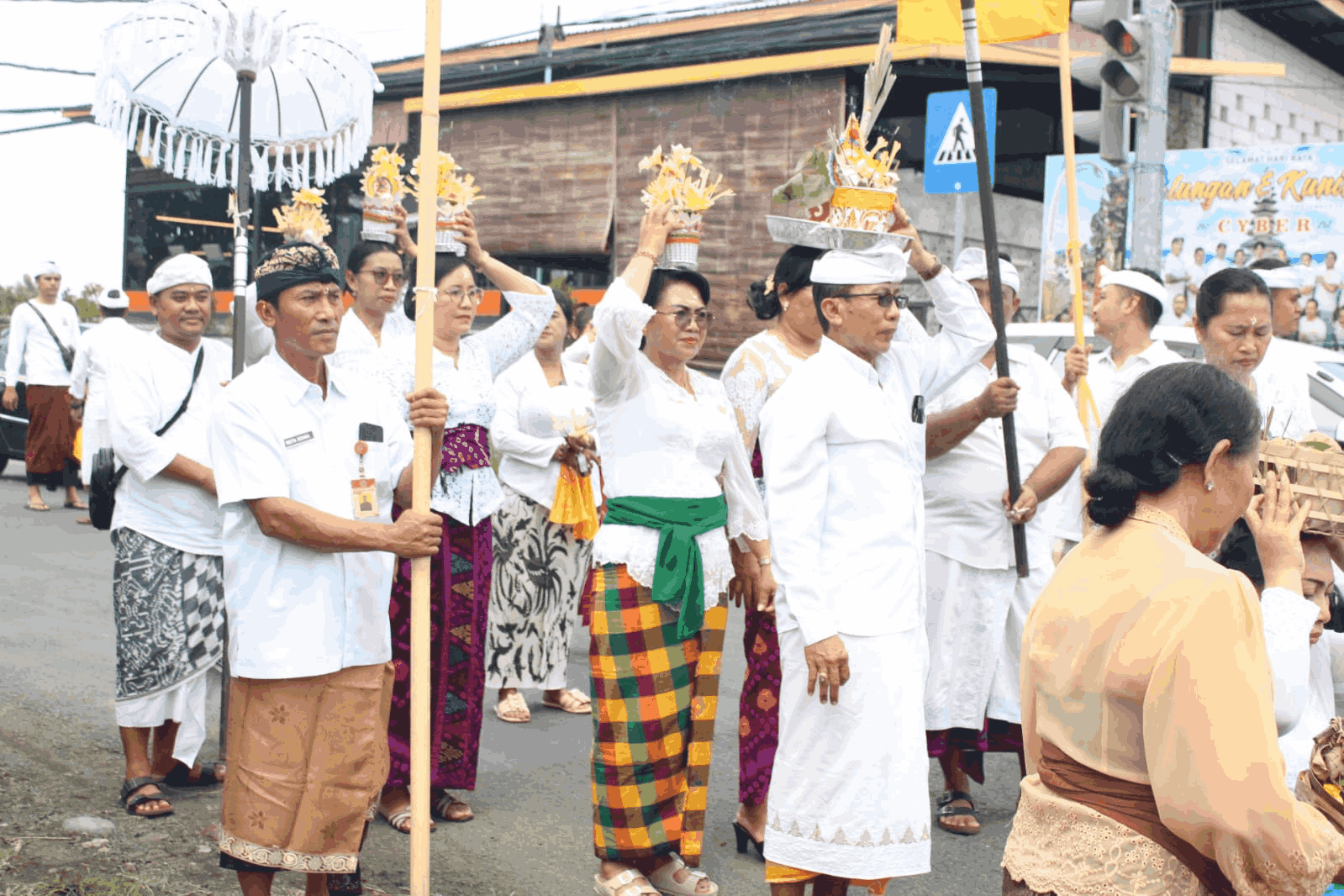 Banjar — Menjelang pelaksanaan upacara melaspas pelinggih di lingkungan Kantor Camat Banjar, krama/pegawai Kantor Camat Banjar melaksanakan rangkaian prosesi sakral mendak ring perempatan pada Kamis(4/12/25)