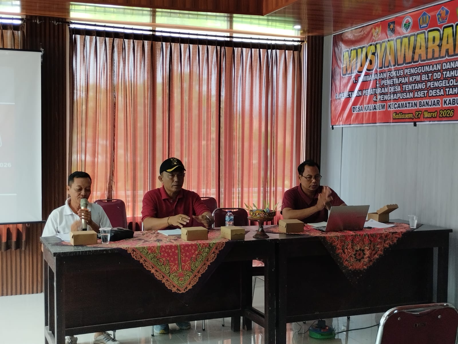 Buleleng – Pemerintah Desa Kaliasem menggelar Musyawarah Desa (Musdes) dan Musyawarah Desa Khusus (Musdesus) pada Jumat, 27 Maret 2026, bertempat di Desa Kaliasem. Kegiatan yang dimulai pukul 10.00 WITA ini dihadiri oleh unsur-unsur Musdes, termasuk perwakilan pemerintah desa, Badan Permusyawaratan Desa (BPD), serta tokoh masyarakat.