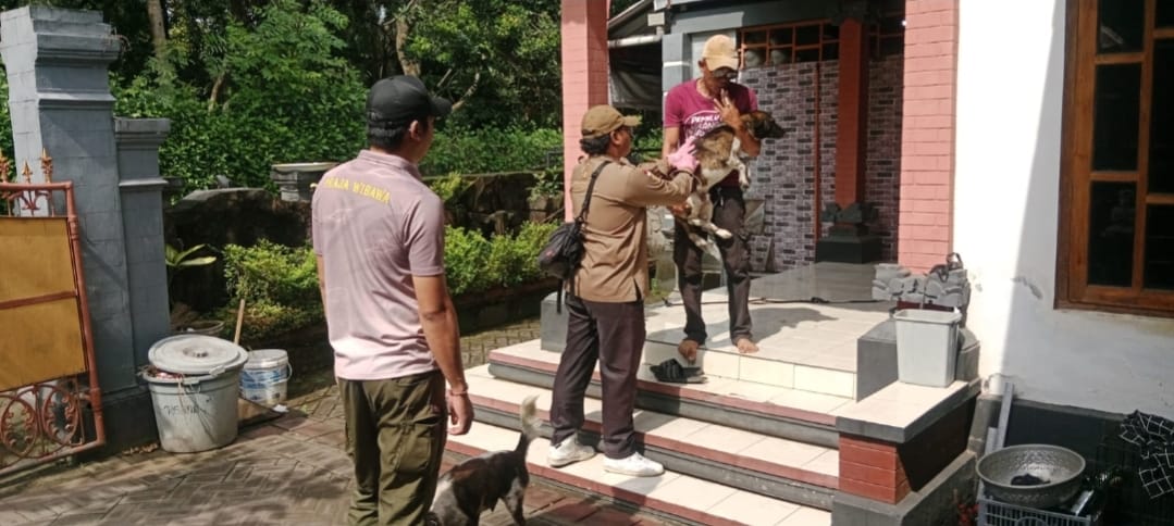 Seksi Ketentraman dan Ketertiban (Trantib) bersama Satpol PP Kecamatan Banjar melaksanakan kegiatan pendampingan vaksinasi rabies yang dilaksanakan oleh BPP Kecamatan Banjar di wilayah Desa Temukus, Senin (9/3/2026). Kegiatan ini dilaksanakan sebagai bagian dari upaya pencegahan dan pengendalian penyebaran penyakit rabies pada hewan penular rabies (HPR), khususnya anjing dan kucing, serta untuk meningkatkan kesadaran masyarakat akan pentingnya vaksinasi hewan peliharaan secara berkala.