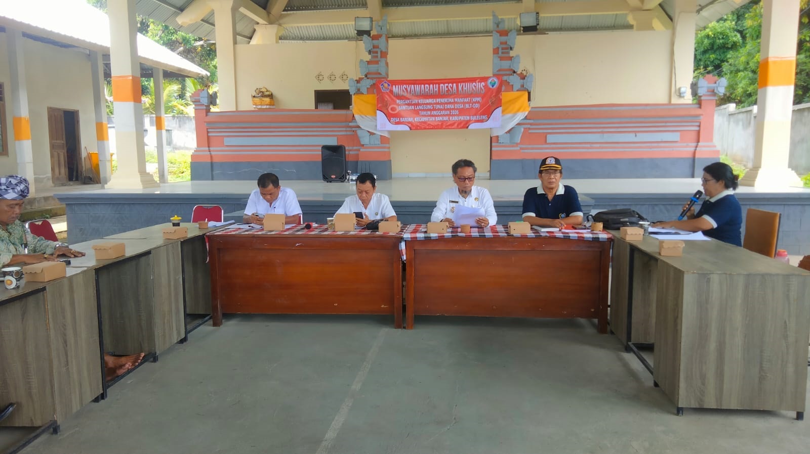 Banjar, 29 April 2026 – Kasi Pemerintahan Kecamatan Banjar Gst Bagus Sarpa Wijaya bersama staf Sosial Budaya menghadiri Musyawarah Desa (Musdes) yang digelar Pemerintah Desa Banjar, Rabu (29/4), bertempat di Wantilan Desa Banjar. Kegiatan berlangsung mulai pukul 12.30 Wita hingga selesai.