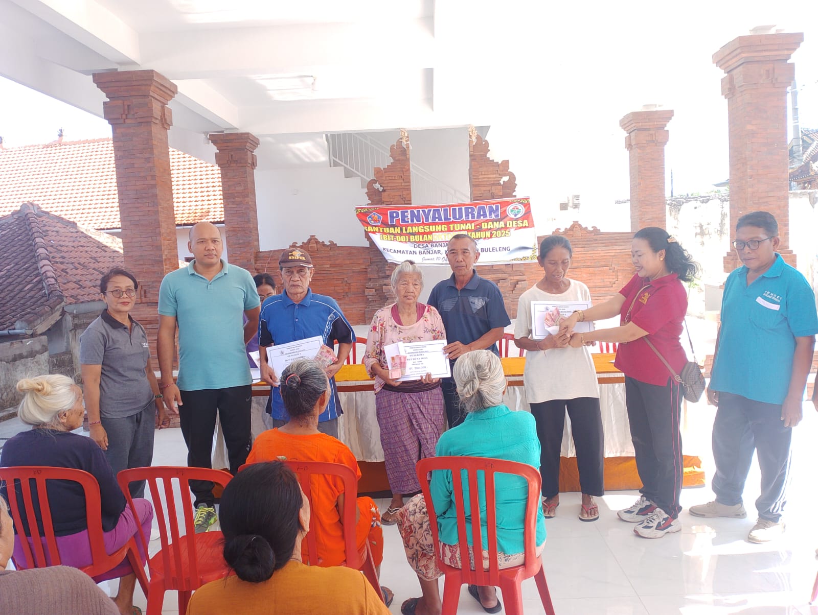 Staf Seksi Sosbud Kecamatan Banjar, Ida Bagus Swastika, juga hadir dalam kegiatan tersebut untuk memberikan pendampingan teknis dan memastikan kelancaran administrasi selama proses penyaluran berlangsung.