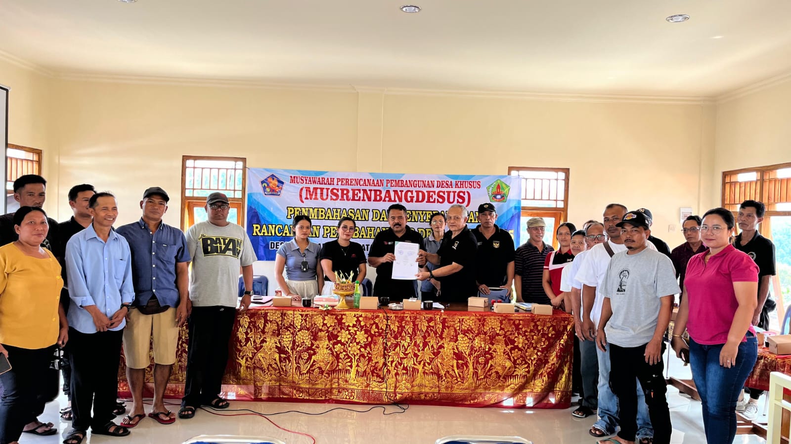 Sebagai penutup, kegiatan diakhiri dengan penandatanganan berita acara Musrenbangdesus sebagai bentuk kesepakatan bersama atas hasil pembahasan perubahan RKP Desa Tahun 2025.