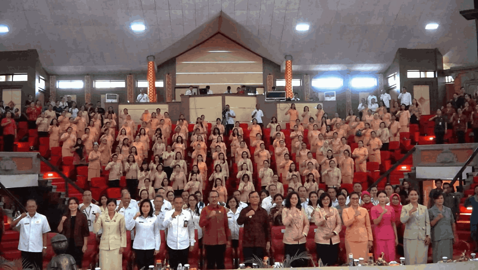 Singaraja — Rabu, 10 Desember 2025, Camat Banjar Putu Widiawan bersama Ketua Unsur DWP Kecamatan Banjar, Ny. Vera Widiawan bersama anggota menghadiri perayaan HUT ke-26 Dharma Wanita Persatuan (DWP) Kabupaten Buleleng yang digelar di Gedung Kesenian Gde Manik Singaraja. Acara puncak perayaan tersebut dihadiri jajaran pimpinan daerah serta organisasi wanita lingkup Kabupaten Buleleng.