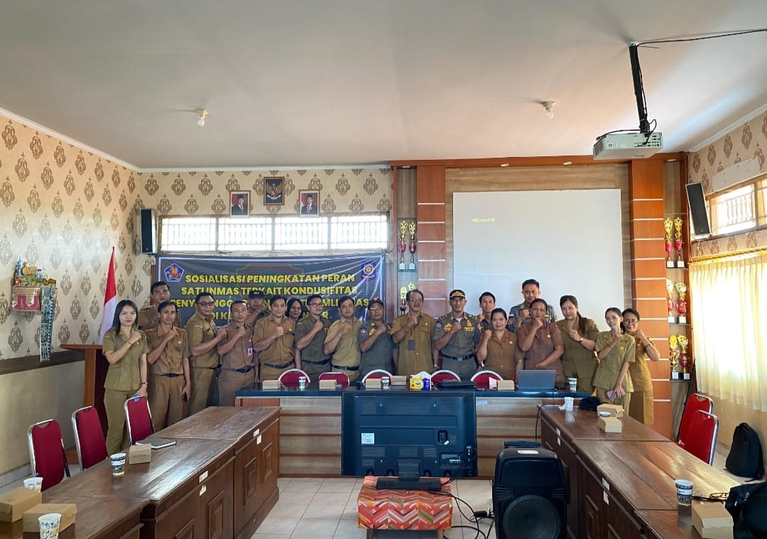 Banjar, 29 September 2025 – Dalam rangka meningkatkan peran serta Satuan Perlindungan Masyarakat (Satlinmas) dalam menjaga ketertiban umum dan ketentraman masyarakat, Satuan Polisi Pamong Praja (Satpol PP) Kabupaten Buleleng menyelenggarakan kegiatan Sosialisasi Peningkatan Peran Satlinmas Terkait Kondusifitas Penyelenggaraan Trantibumlinmas di Kantor Camat Banjar.